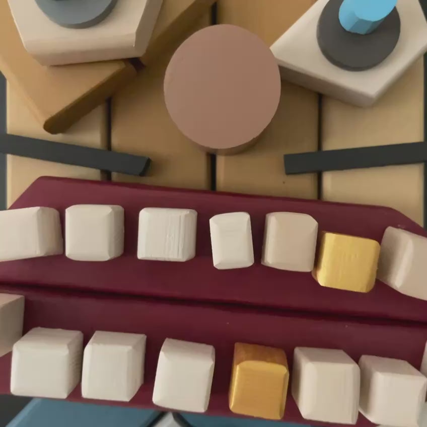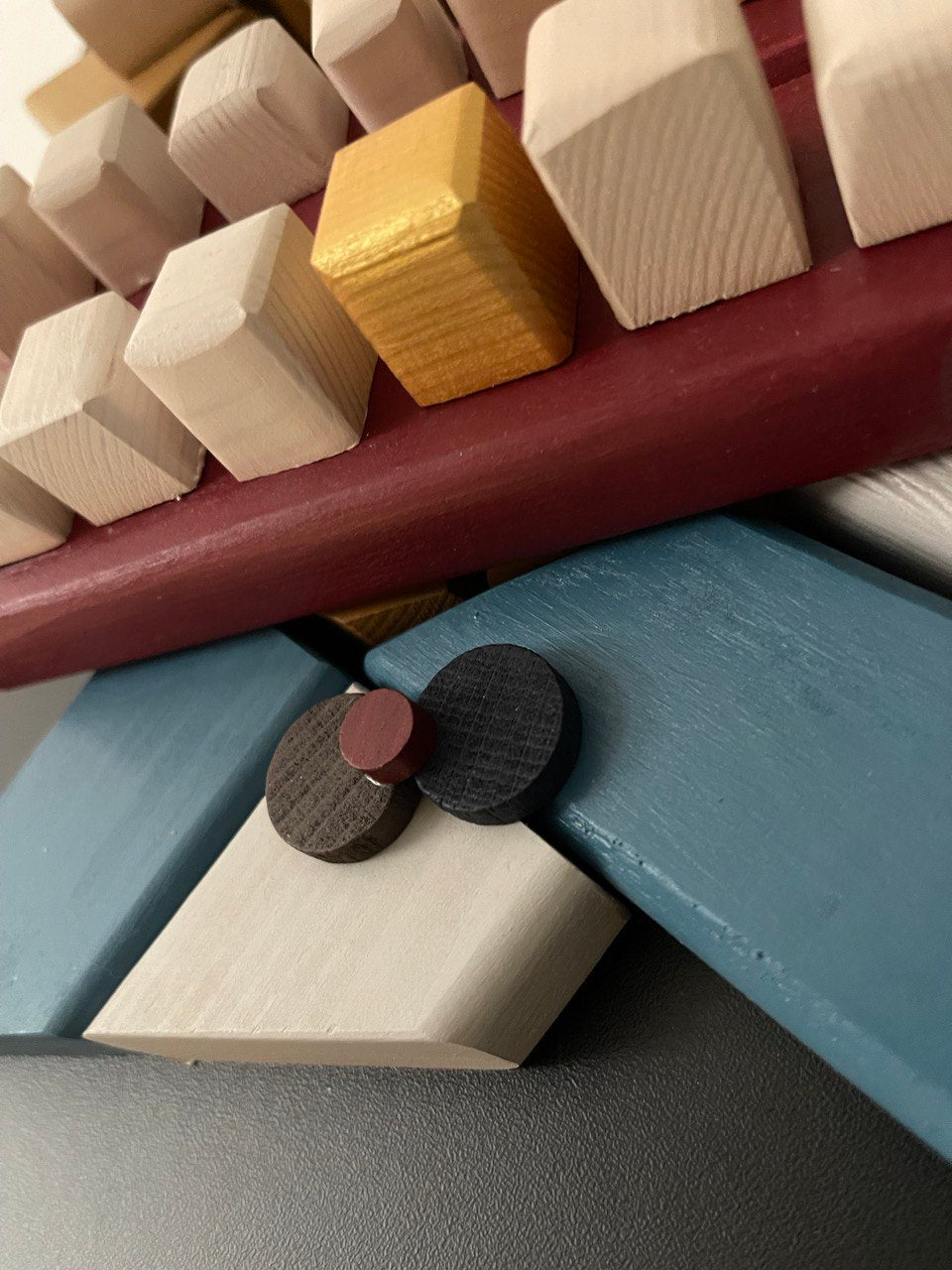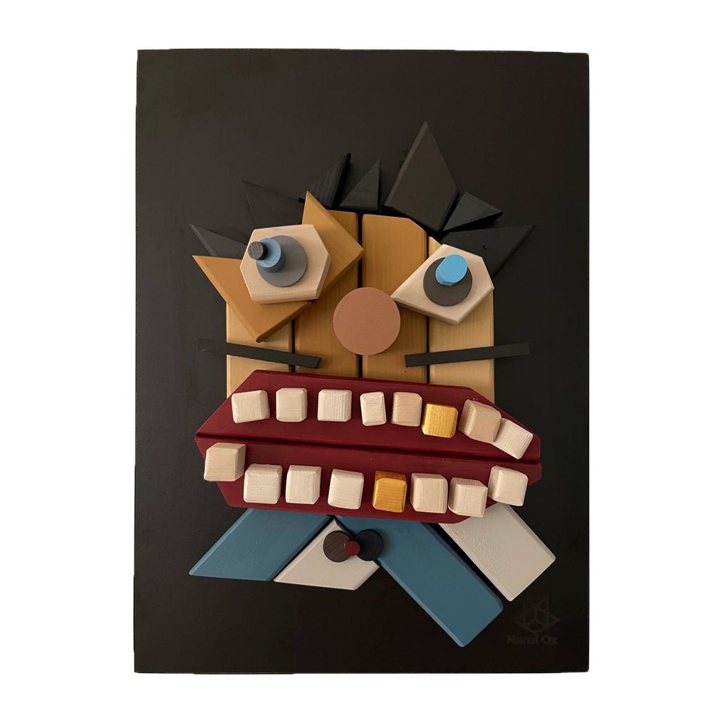Material: wooden shapes, acrylic paint, Black Melamine Plywood.
