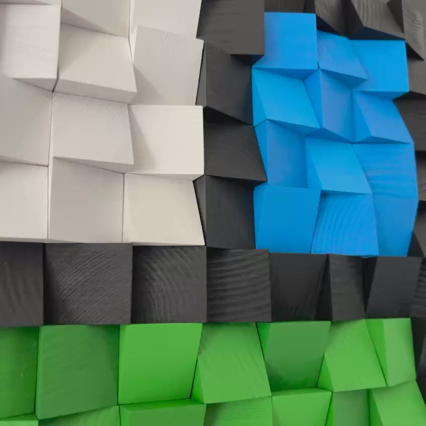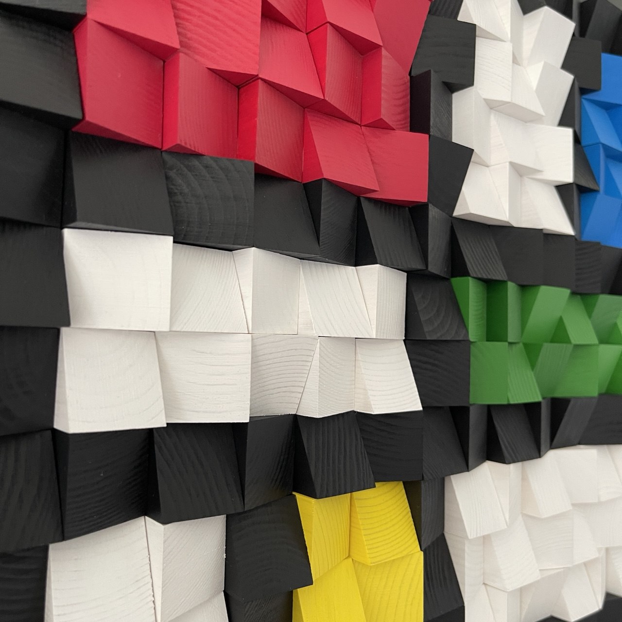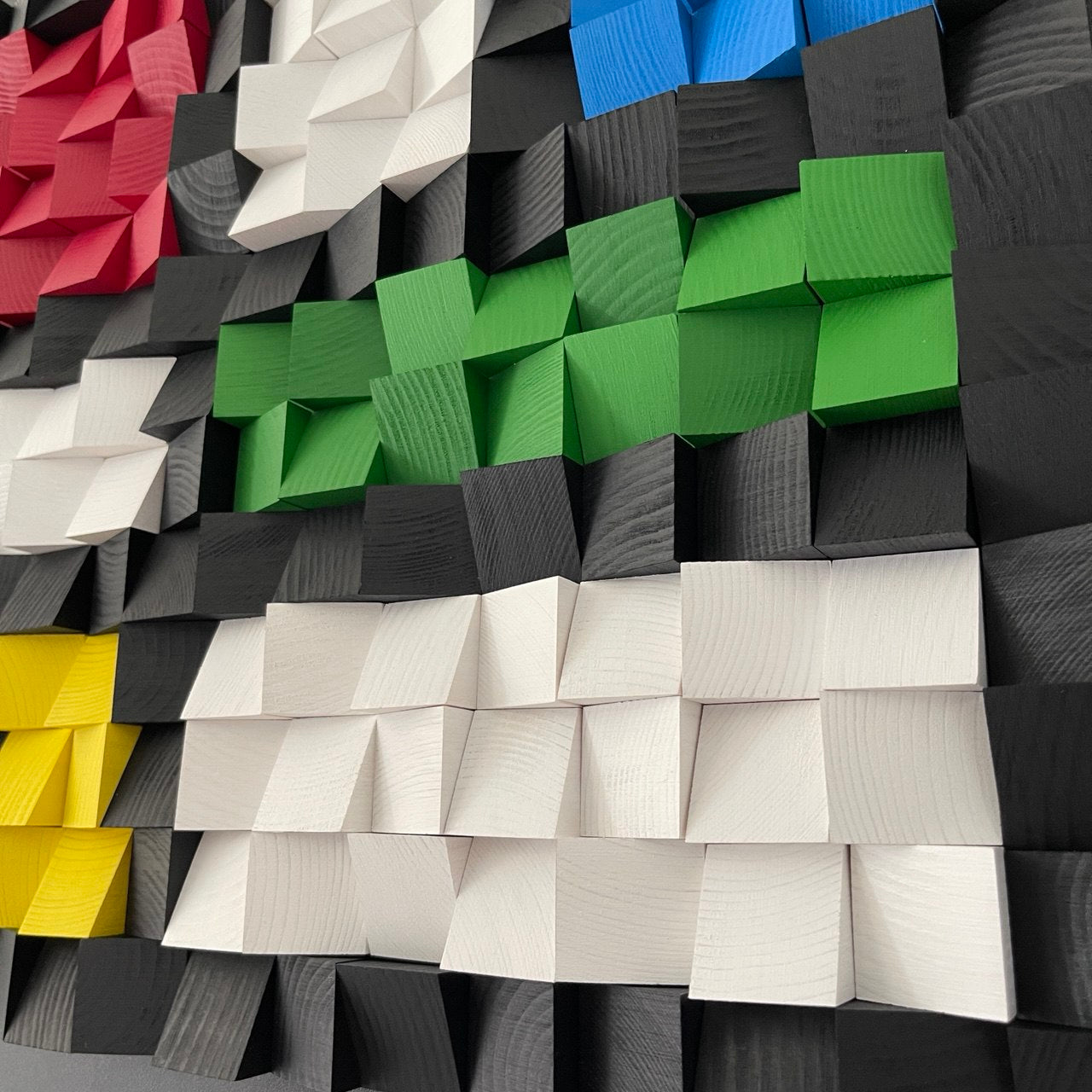 Material: pine wood, acrylic paint, Black Melamine Plywood.