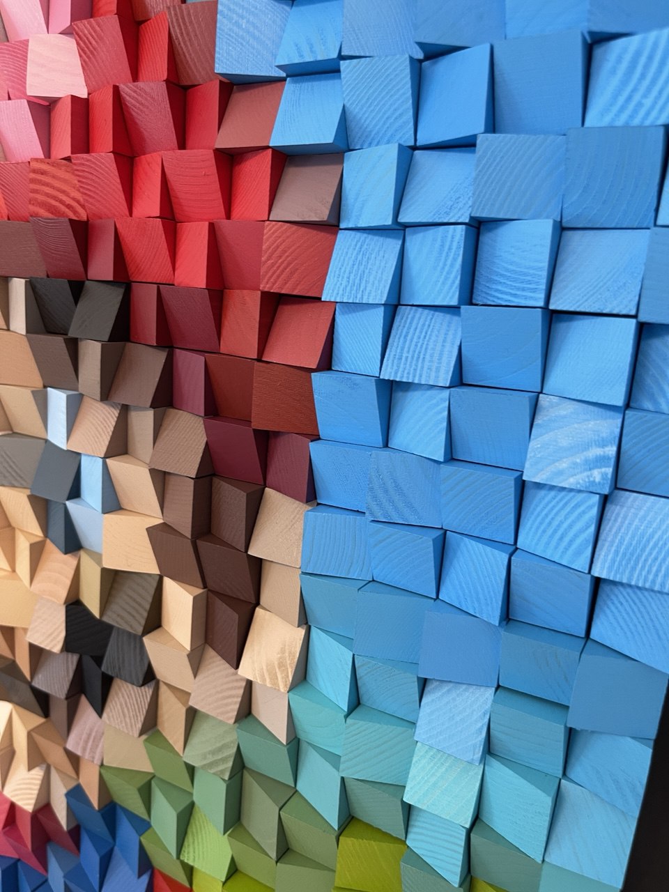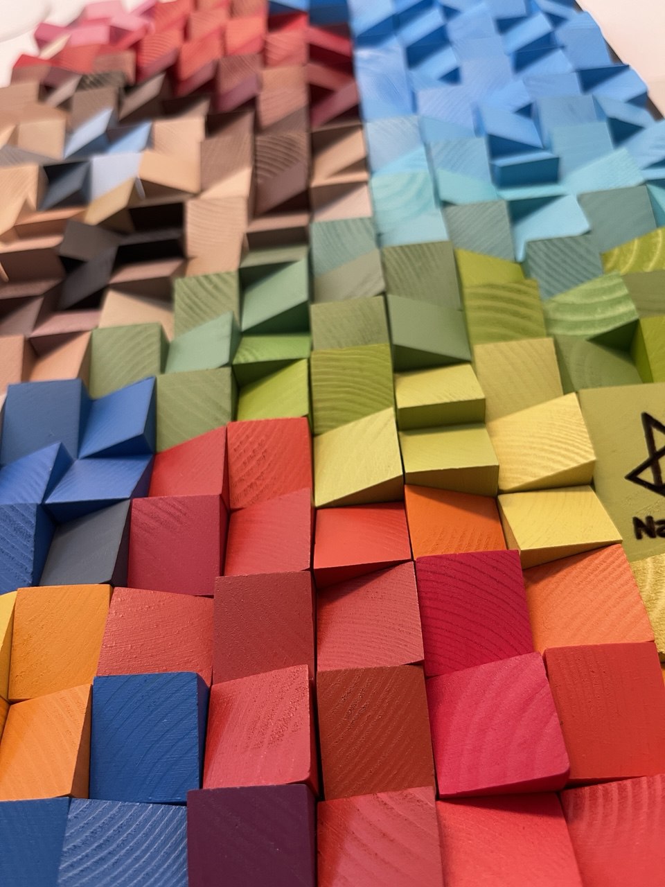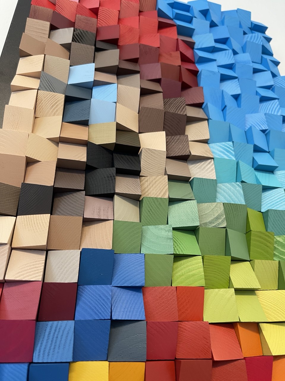 Material: pine wood, acrylic paint, Black Melamine Plywood.