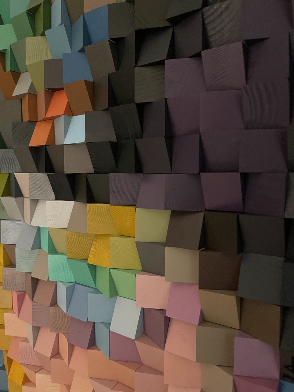 Material: pine wood, acrylic paint, Black Melamine Plywood.